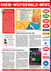 Die Rhein-Westerwald-News enthält aktuelle Berichte aus der Region, Veranstaltungstipps und Servicebeiträge. Sie beinhaltet außerdem die aktuellen Angebote aus den Vorteil-Centern, gültig vom 1. Januar 2026 bis zum 14. Januar 2026.