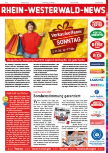 Die Rhein-Westerwald-News enthält aktuelle Berichte aus der Region, Veranstaltungstipps und Servicebeiträge. Sie beinhaltet außerdem die aktuellen Angebote aus den Vorteil-Centern, gültig vom 23. Oktober 2025 bis zum 5. November 2025.
